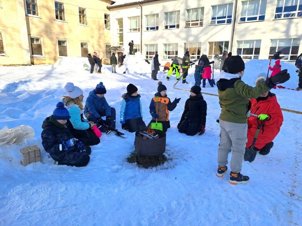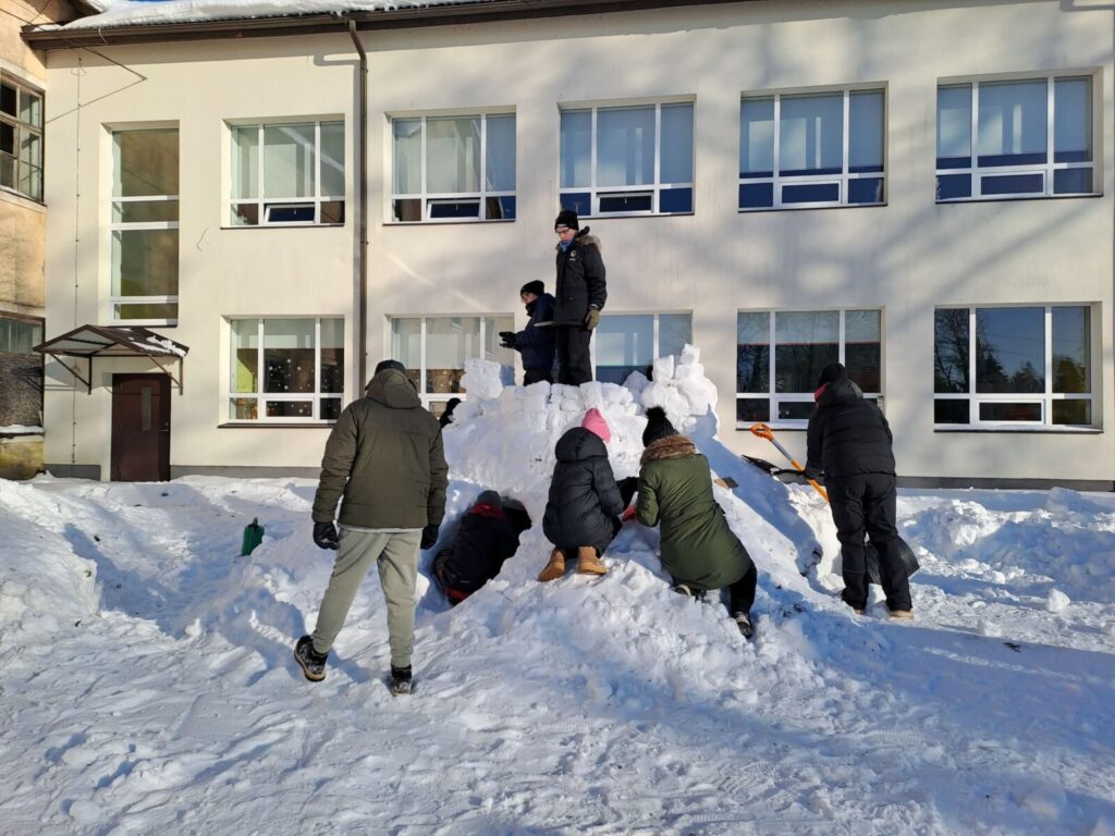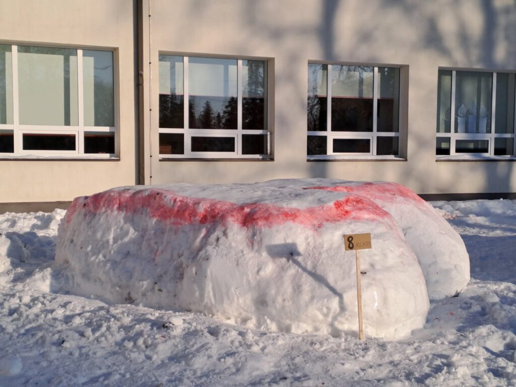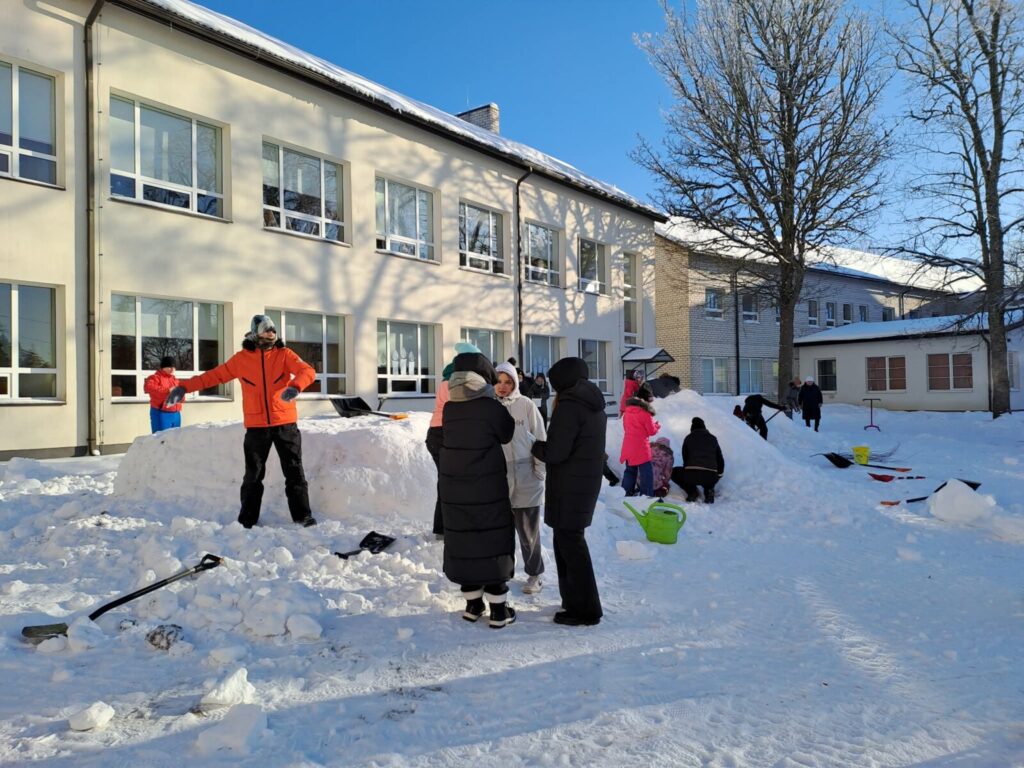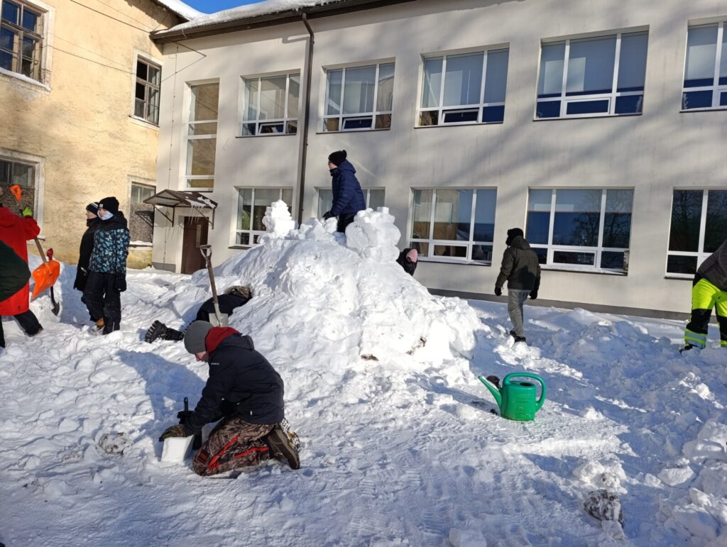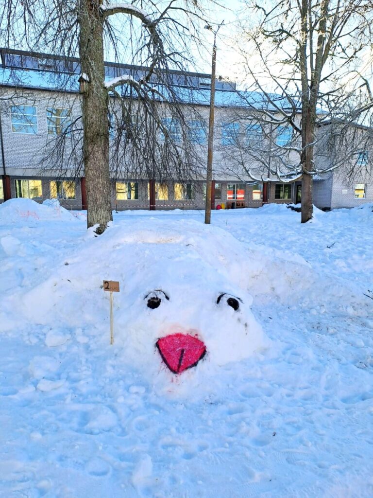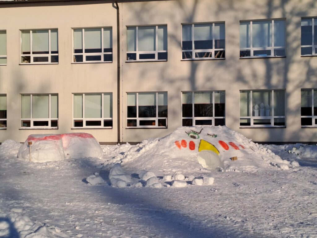 Loomulikult alustati sellest, et õpilased tegid oma lumeehituseks kavandid, millest iga klass omale lemmiku valis. Ehitamise päeva hommikul ehmatasid küll krõbedad külmakraadid, aga ega seda soojemat ilma praegu kuskilt võtta ei ole.