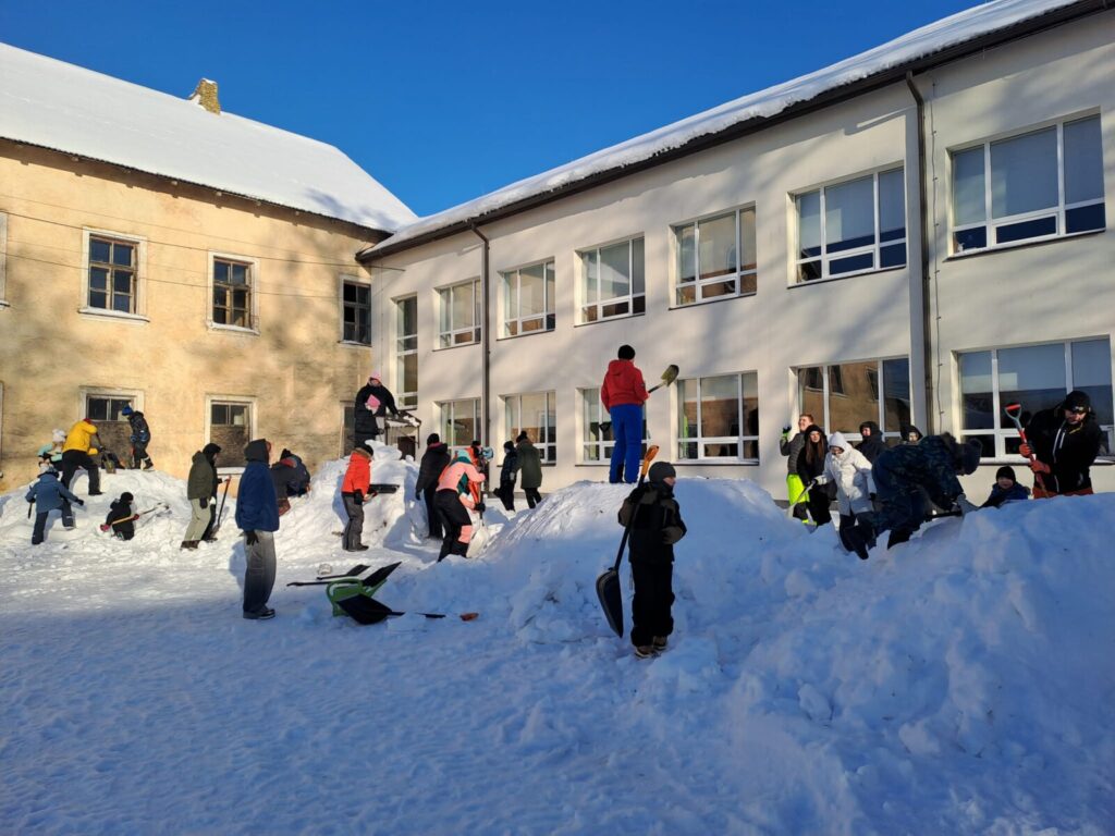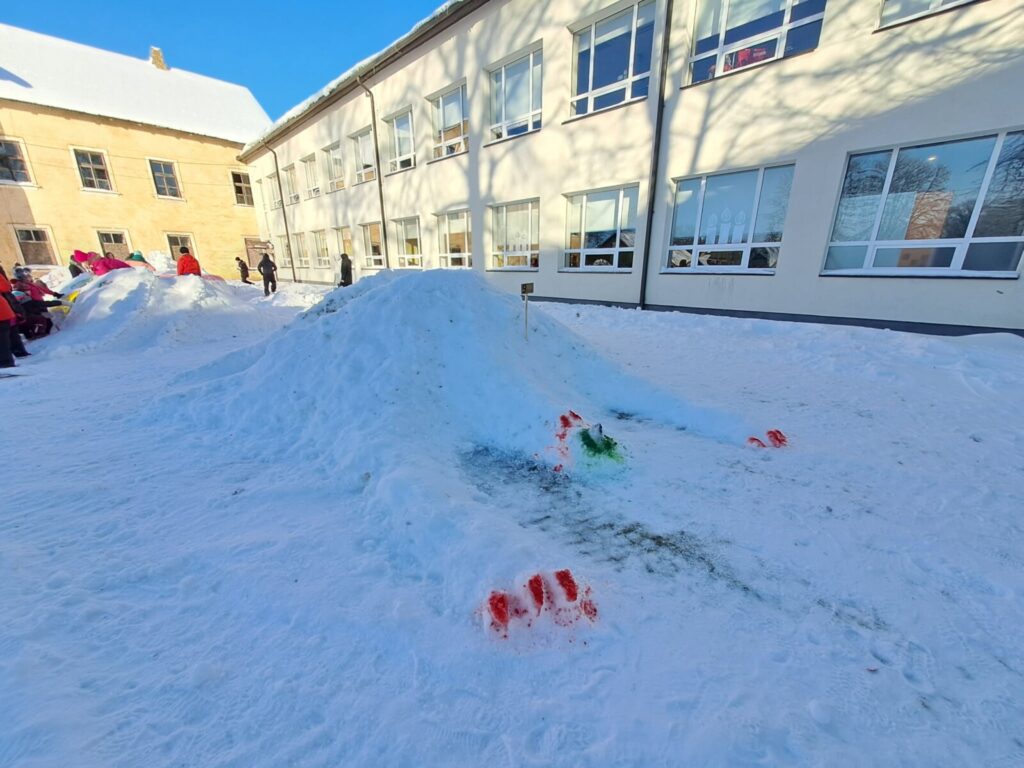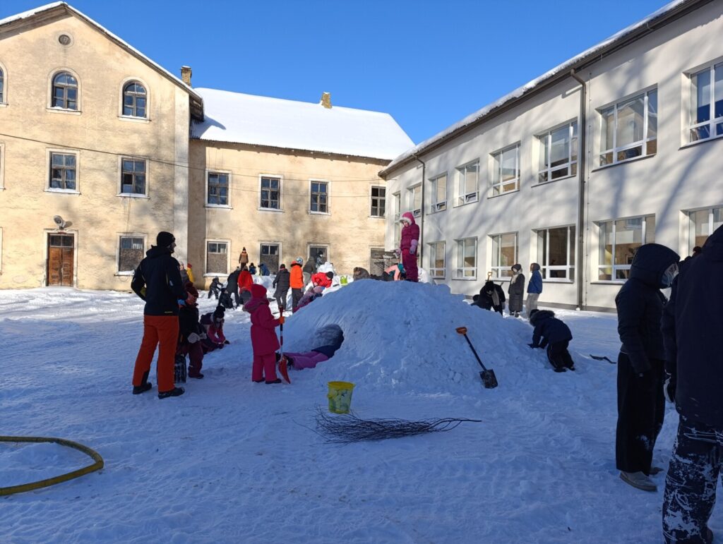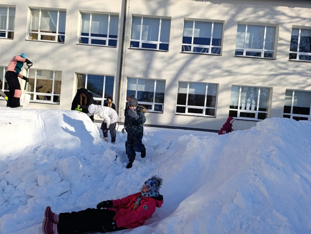 Suur aitähh Gustav Põldmaale ja Jaan Ahlbergile, kes korralikud lumehunnikud kooli õuele kokku lükkasid .